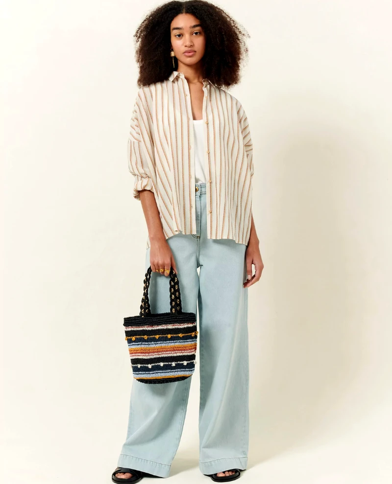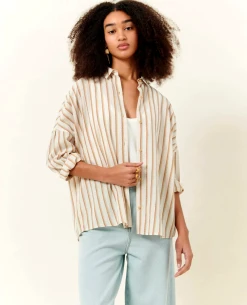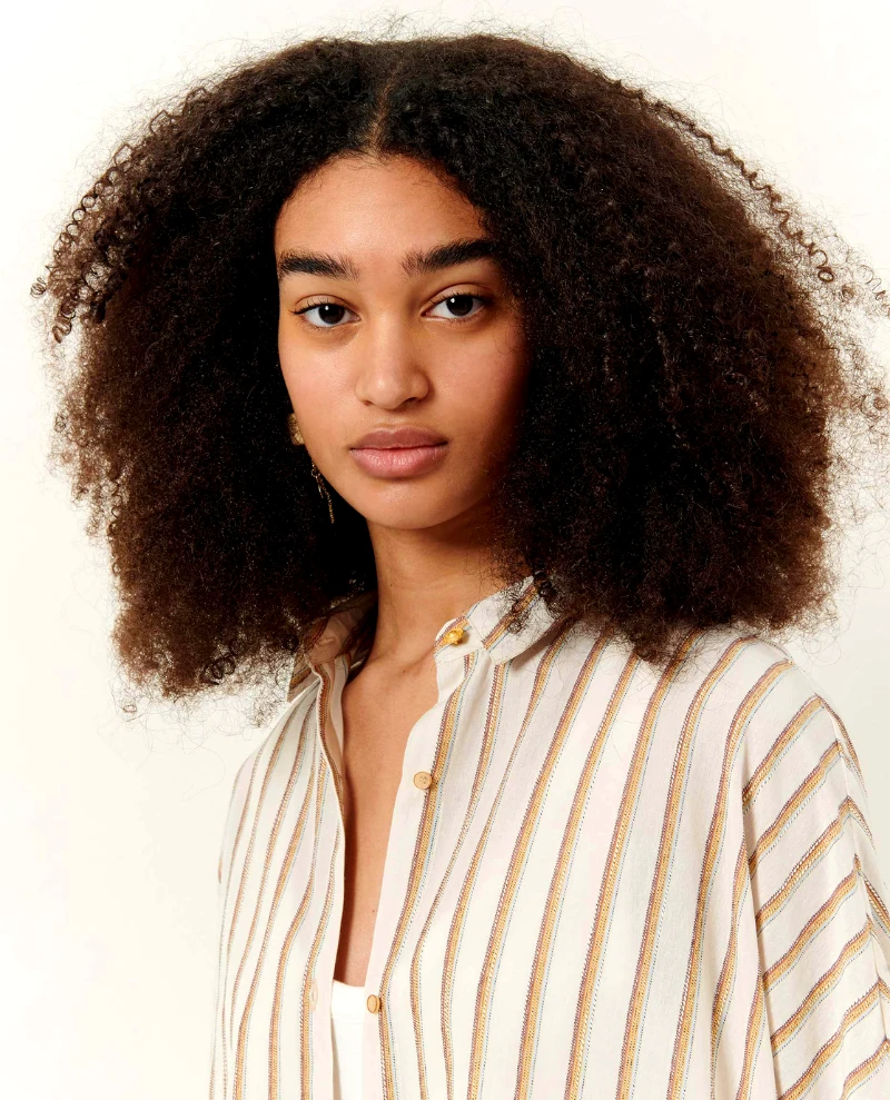 Sessun Botan Alba Sand Shirt, a relaxed fit blouse in neutral sand tone. The perfect shirt, the Botan has a relaxed, laid back fit with stripe detail, collar and button fastening. Pair with washed denim and trainers for a casual look.