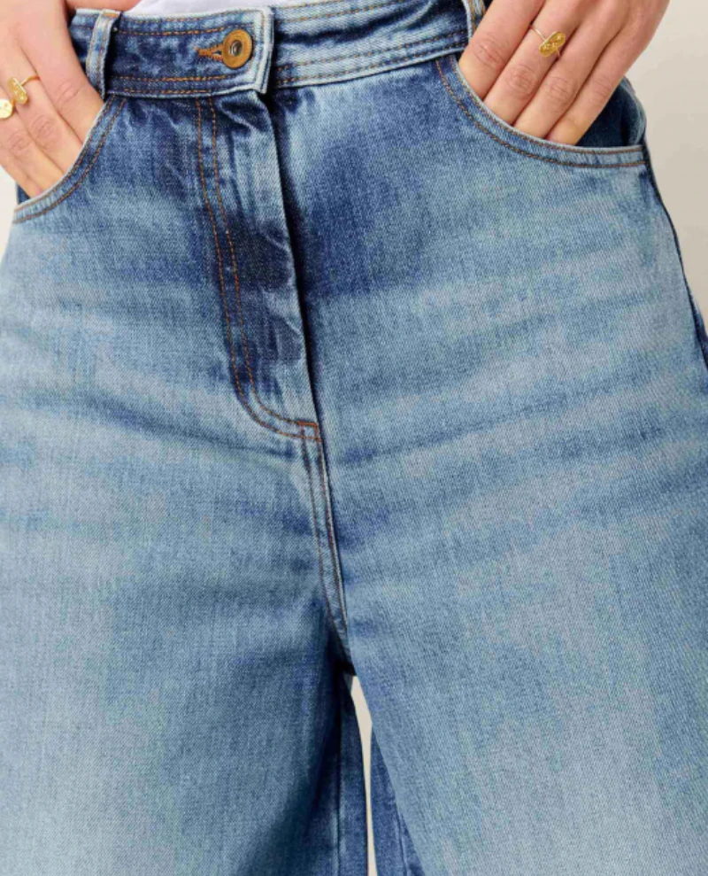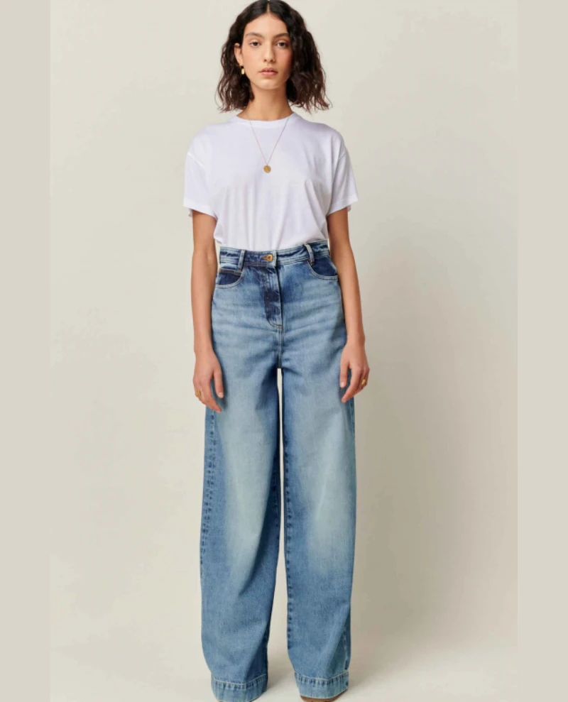 Sessun Captain Denim Jean, a gorgeous washed denim jean with flared leg. Complete with high rise and pockets to the front and back, the Captain jeans look beautiful paired with a classic white tee, breton or chunky knit.