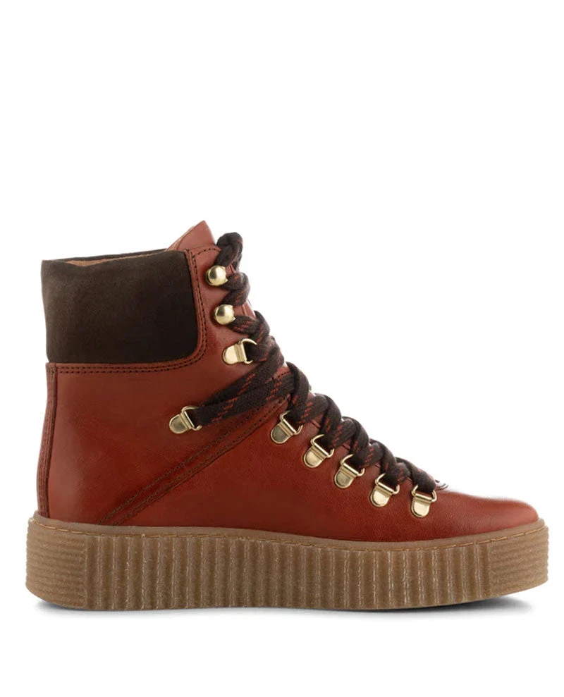 Shoe The Bear Agda Brown Boot, a brown hiking-inspired lace up boot. Featuring a durable crepe rubber sole for comfort and stability, the agda is full of personality and finished with lace closure with D-rings and hook detail.