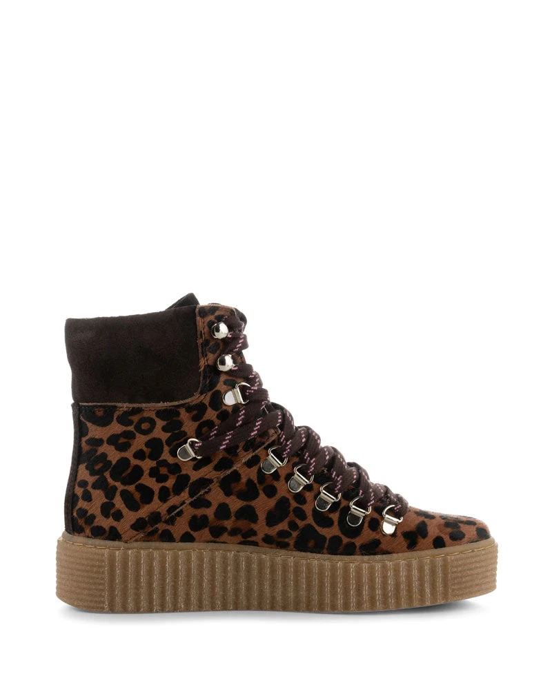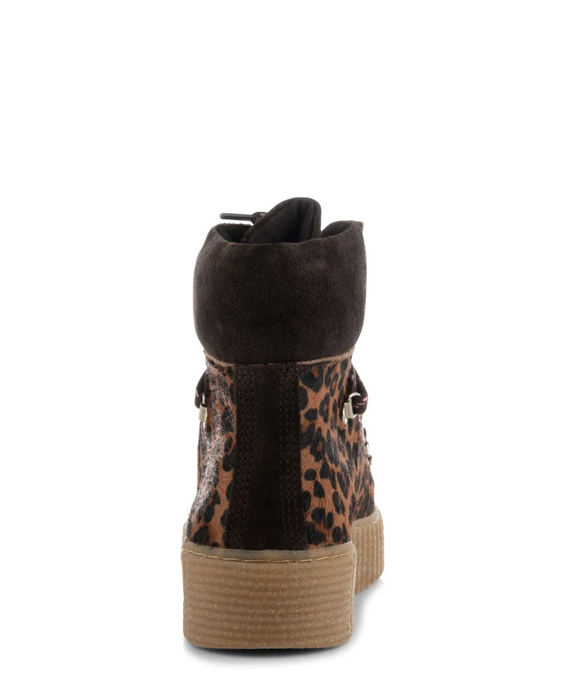 Shoe The Bear Agda Print Pony Boot, a hiking-inspired boot in chesnut toned leopard print. Handcrafted in Portugal from LWG-certified leather, the Agda features a crepe sole made from rubber for maximum comfort and stability.