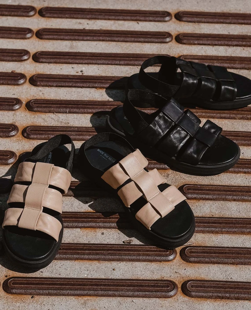 Shoe The Bear Brenna Fisherman Black Leather Slingback, a comfortable yet elegant sandal – perfect for a garden party or city stroll. The beautiful cage-style leather straps give the sandal exclusivity while the elastic band around the heel ensures a a comfortable fit.