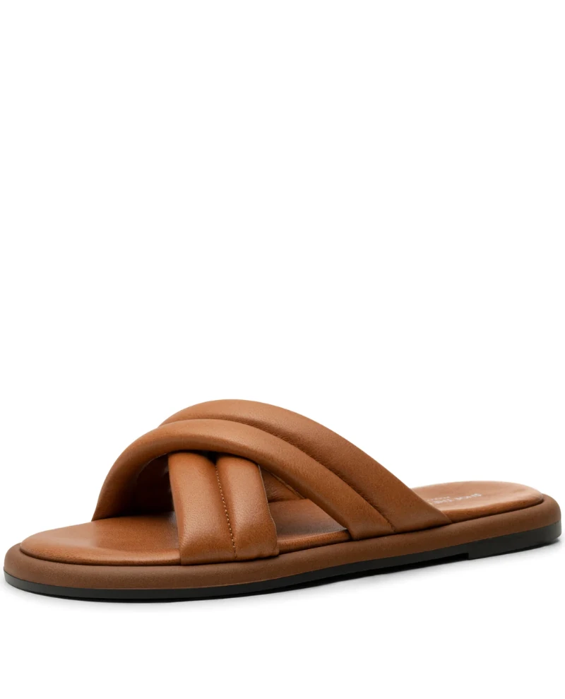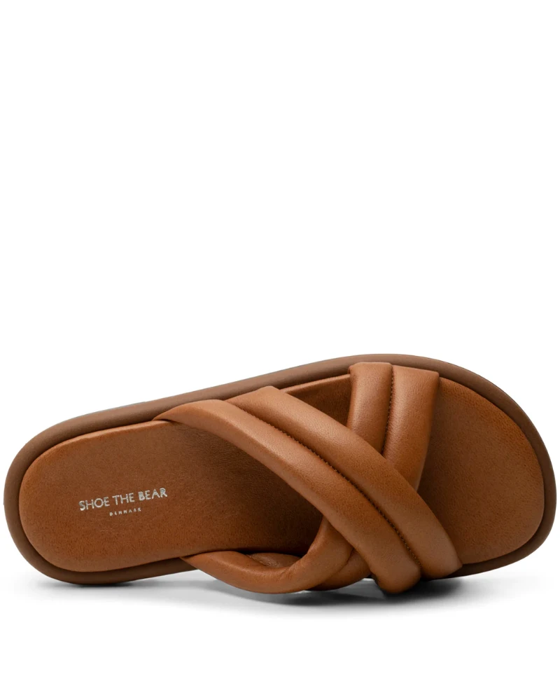 Shoe The Bear Lotta Cross Tan Leather Mule, a rich brown classic sandal: a comfortable slipper with chunky cross detailing, handcrafted in Italy with 100% LWG-certified leather. It’s soft padding and timeless look makes Lotta Cross Mule causal and versatile, for a modern and easy look.