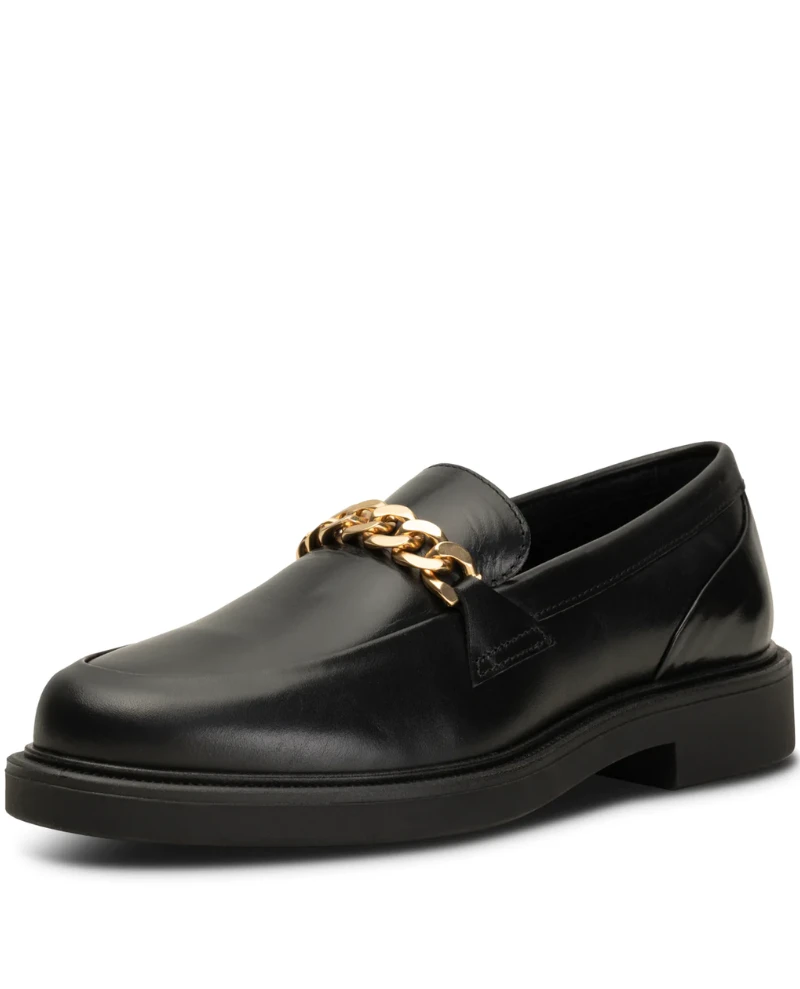 Step-up your classic black loafer with Shoe The Bear’s Thyra style. Expertly crafted by hand in Portugal, these loafers feature luxurious LWG certified leather and signature gold chain trim for an elevated look. Get ready for compliments!