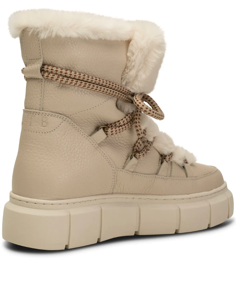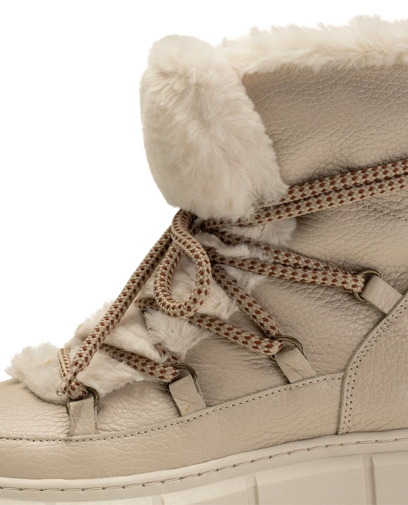 Step out in style with the Tove Snow Boot from Shoe The Bear. Crafted with a combination of faux fur and leather, this classic winter boot has a chunky track sole, wool lining, and handcrafted lacing fastening – all made in Portugal. Stay warm and fashionable this season.