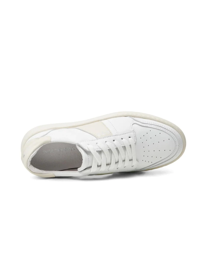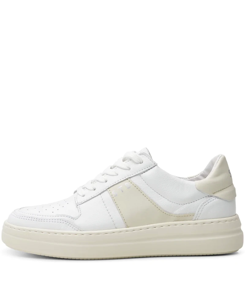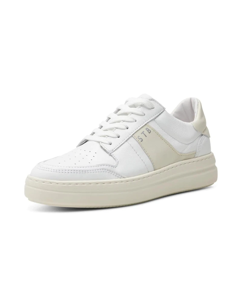 Shoe The Bear Valda White Leather Trainer, a casual sneaker combining sporty functionality and classic simplicity. The sneaker is made in Portugal in a combination of leather and delicate suede. Valda has shoelaces on the front, printed details at the side and heel as well as an embossed EVA sole which emphasises the textured details of the shoe.