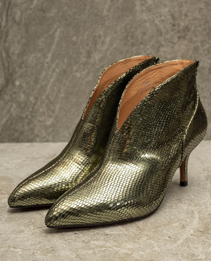 Shoe The Bear Valentine Snake Olive Metallic Ankle Boots