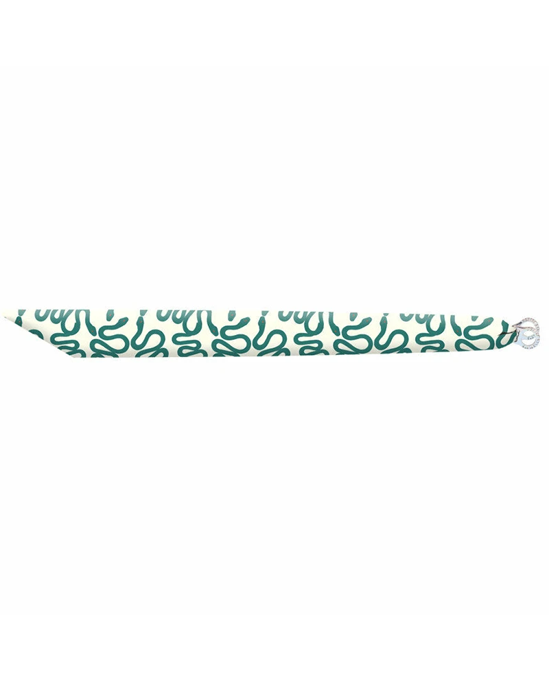 Sorbet Bracelets Snake Silk Bracelet, a white silky friendship bracelet printed with green snakes. This silk fabric band has silver plated loops to tie and secure the bracelet around your wrist.
