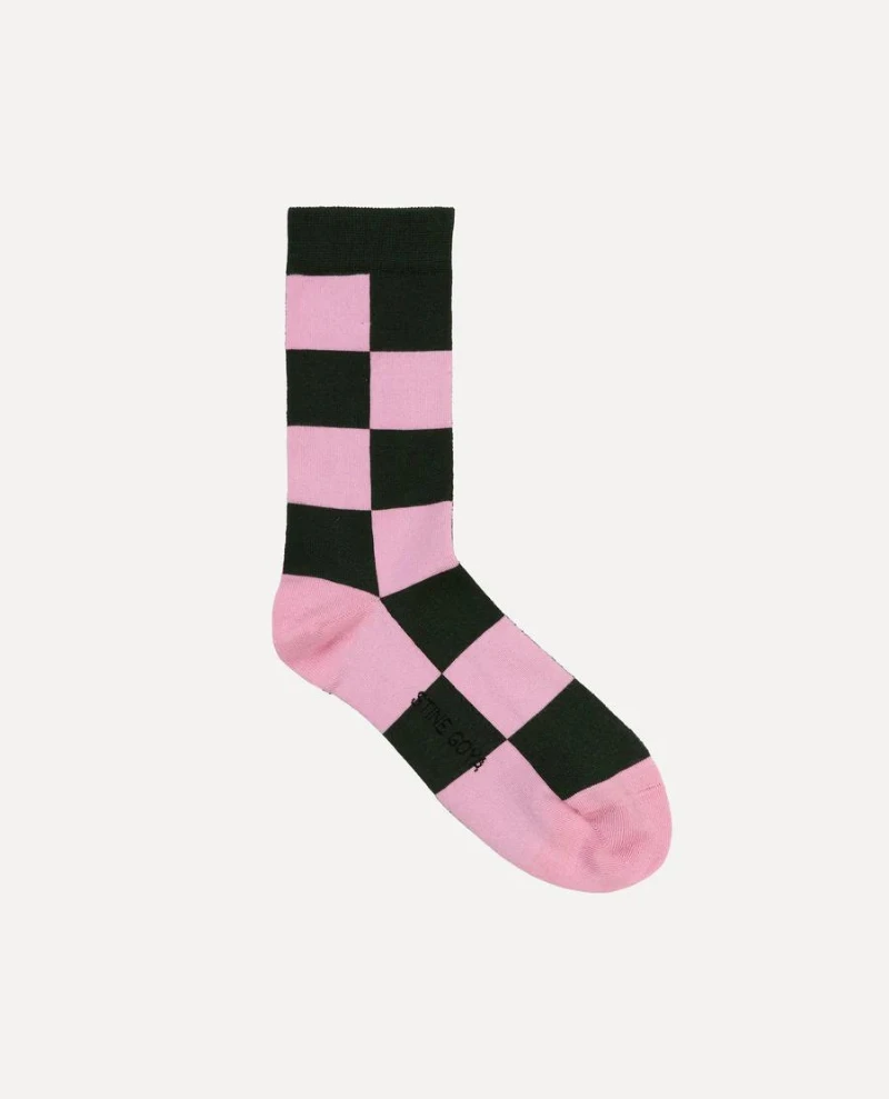 Stine Goya Iggy Dahlia Check Sock, a black and pink checked pair of stretchy ankle socks.