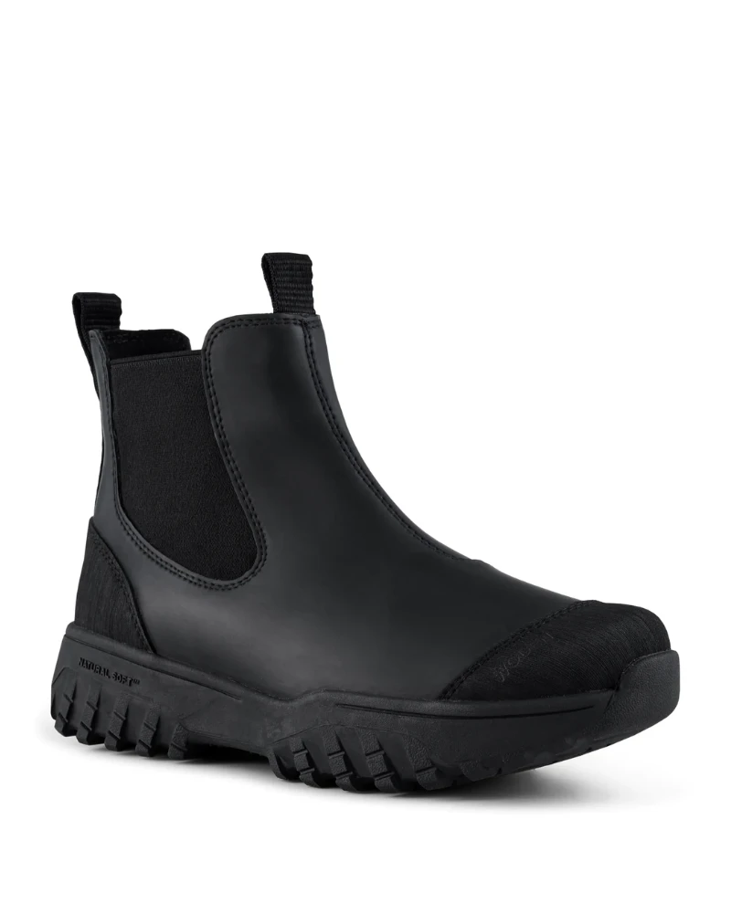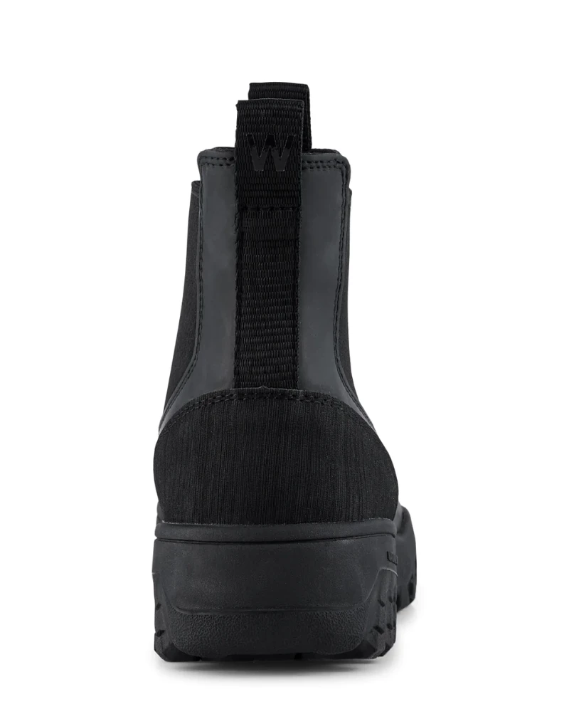 Woden Magda Black Boots, a waterproof rubber boot with a thick track sole. Easy to slip on this black boot has a soft PU-foam insole which is light but also shock-absorbing. Stable and durable the Magda black boots have the Woden cork soles for breathability that are then covered in natural rubber which makes for a ultra soft walking experience. Also comes in olive green.