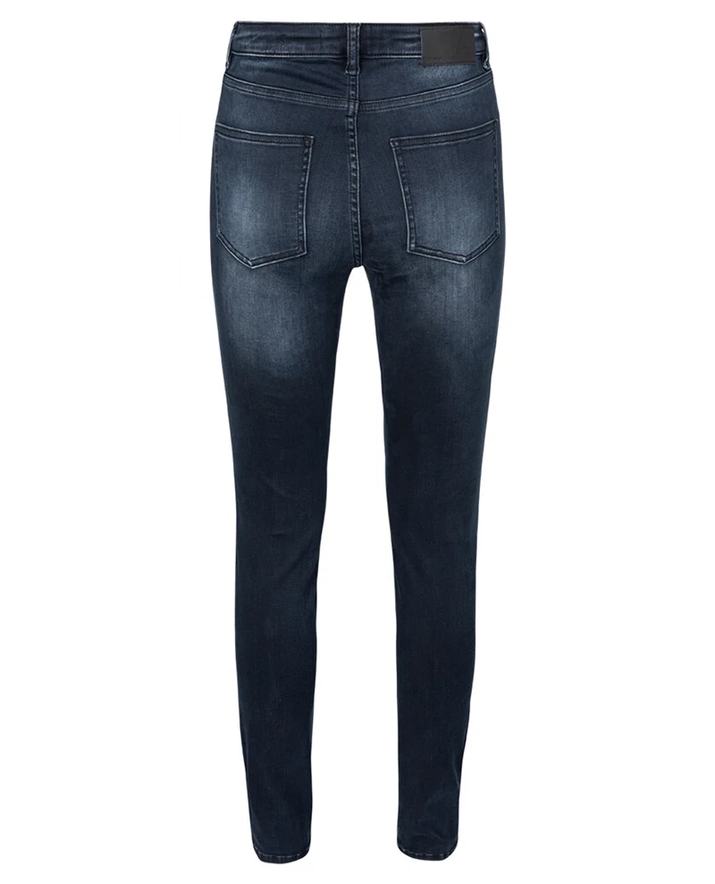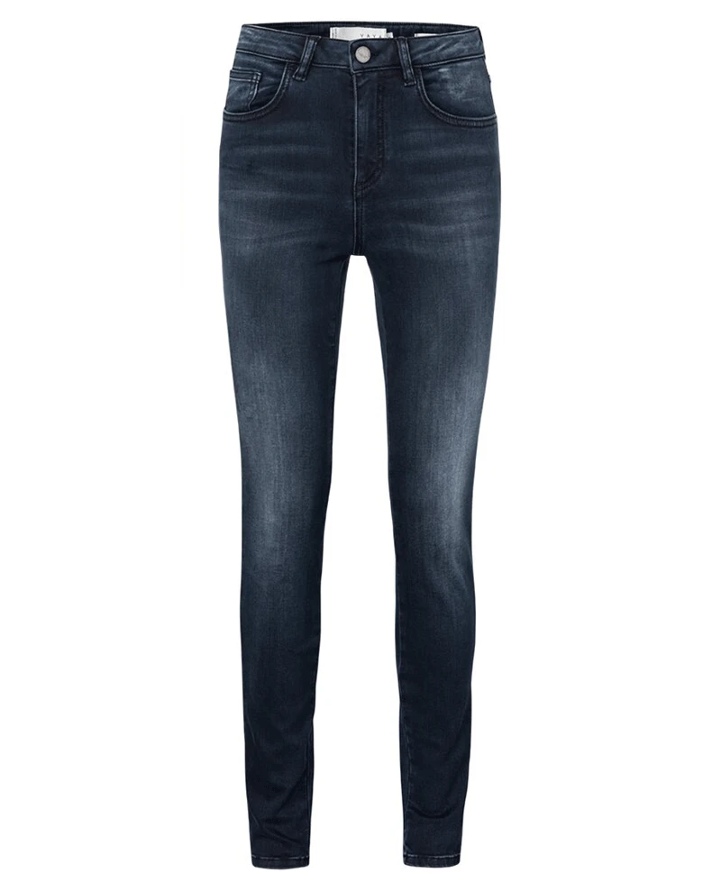 Yaya Dark Blue Denim Jeans, a dark indigo blue pair of skinny fit jeans with a button and zip fastening and the classic 5 pocket design.