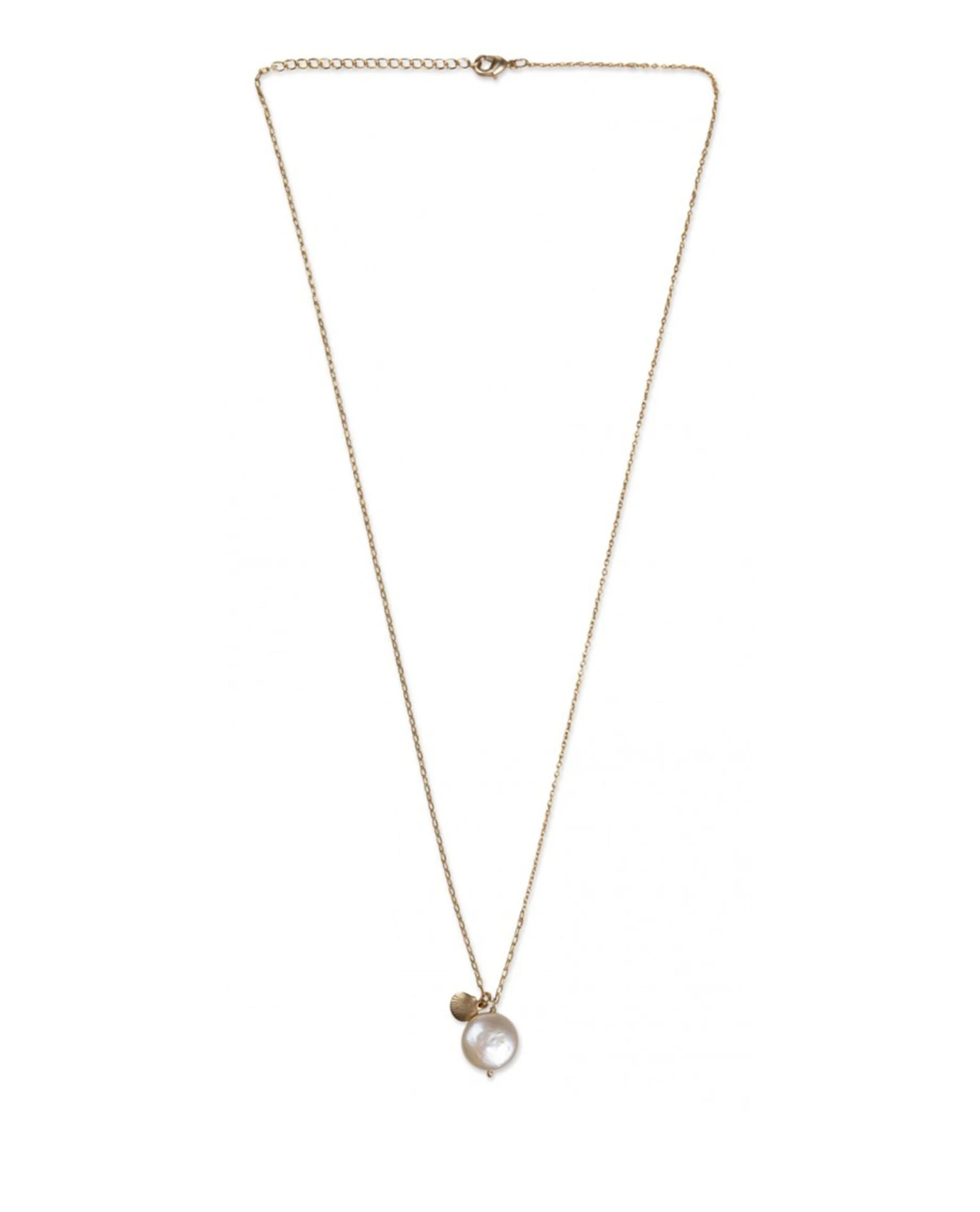 Yaya Gold Pearl Shell Necklace, a fine gold chain necklace with an imitation shell pendant and a small golden glam shell charm.