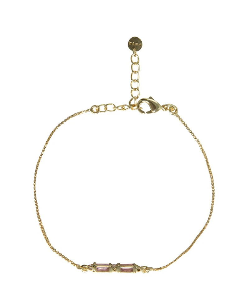 Yaya Gold Small Stone Bracelet, a thin and delicate golden metal chain bracelet with a amber coloured gem stones at the centre.