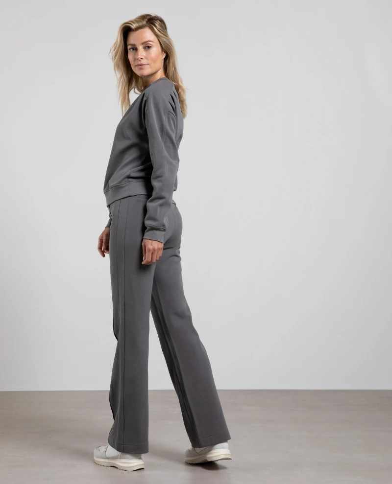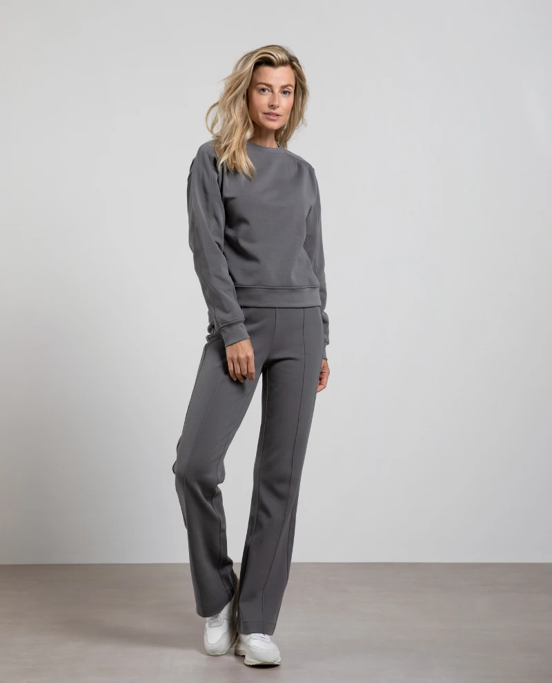 Yaya Jersey Wide Leg Grey Trouser, these comfortable trousers are carefully crafted from a refined cotton blend and feature wide legs for a comfortable fit. Complete with front seam detail, these are easily paired with everything in your wardrobe thanks to their neutral grey tone.